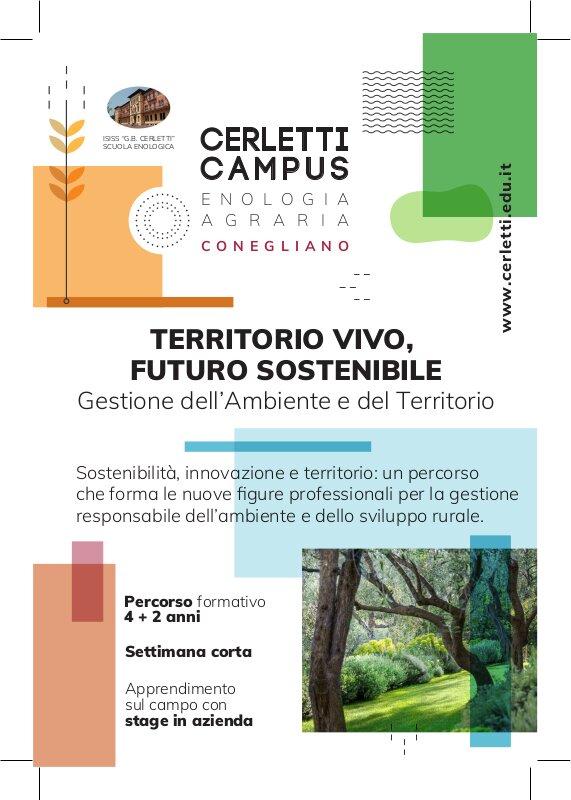 In allegato anche la NOVITÀ del prossimo a.s. Aggiungeremo alla nostra Offerta Formativa il NUOVO PERCORSO 4+2 del TECNICO, GESTIONE DELL’AMBIENTE E DEL TERRITORIO.Invito inoltre a consultare la sezione dedicata al Convitto e al SEMICONVITTO (studio assistito il pomeriggio fino alle 16) (https://cerletti.edu.it/luogo/isiss-g-b-cerletti-scuola-enologica/convitto-di-conegliano/). Il convitto e il semiconvitto nasce per supportare i ragazzi nel loro percorso di studio, offrendo loro un ambiente che favorisce il successo scolastico non solo come frequenza scolastica ma come strumento di crescita e sviluppo.